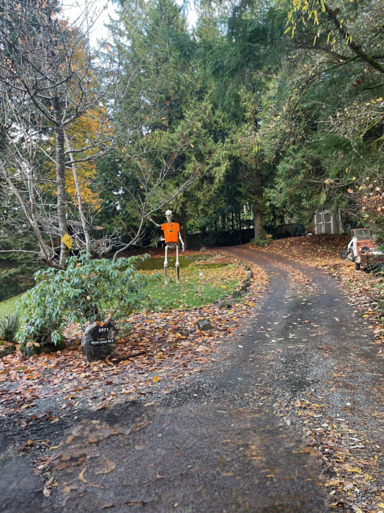 For the past three years, my husband and I have rented the same house outside of Seattle on the Puget Sound. The dates of our weeks there have spanned the months of October, November and December and each year, no matter what the calendar says, in the front yard of a home close to our rental, is a large Halloween decoration of a skeleton. Even with Santa’s big ride fast-approaching, the faux bony framework of a human, and one year, a flamingo, stand where a snowman and reindeer should.