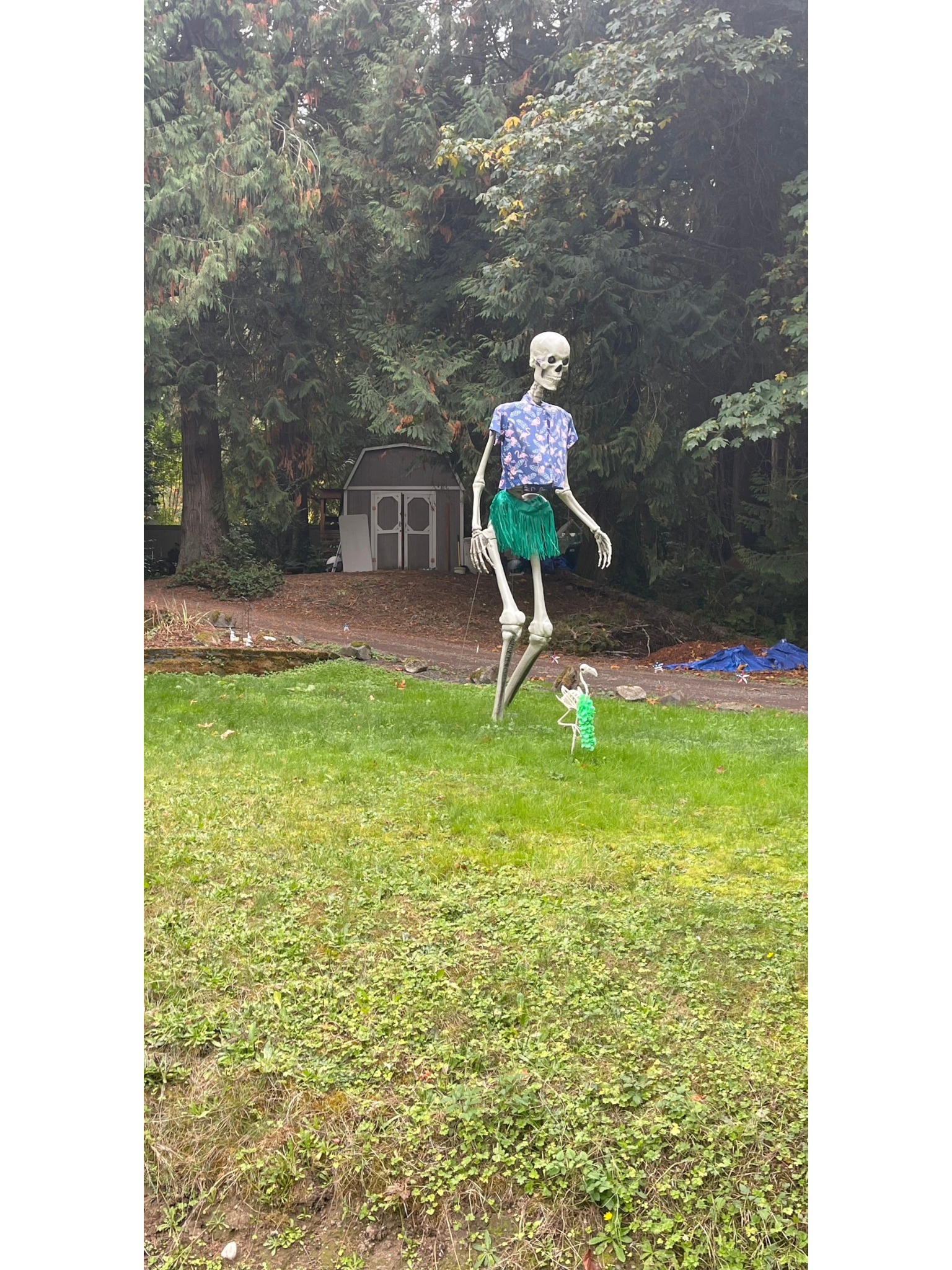 For the past three years, my husband and I have rented the same house outside of Seattle on the Puget Sound. The dates of our weeks there have spanned the months of October, November and December and each year, no matter what the calendar says, in the front yard of a home close to our rental, is a large Halloween decoration of a skeleton. Even with Santa’s big ride fast-approaching, the faux bony framework of a human, and one year, a flamingo, stand where a snowman and reindeer should.