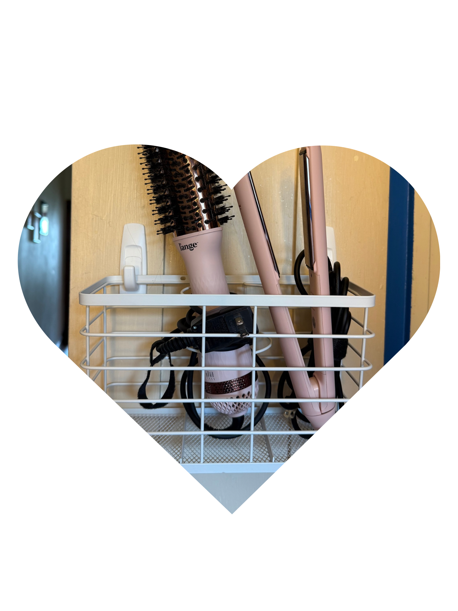 Last week I decided to add a hair tool storage holder to the inside of my bathroom closet to hold my new hair straightener and blow dryer brush. My 120-year-old home has no linen closet, a small bathroom and narrow vanity, therefore, creativity is necessary for stowing all the things you would find in the “Pharmacy” of Target or Walmart as well as spare towels.