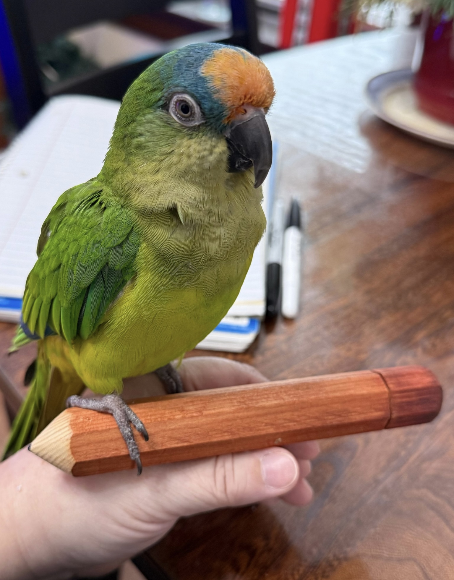 Meet Piper Hemingway, whose talents have been reduced to helping his mom with tales about his tail, his beak and his feathers. It’s only fair. We all deserve to write our own story. #sisterrain #alittlesightalotofheart #piper #birdmom #conure #parrot #adoptdontshop #ahelpingwingparrotrescue