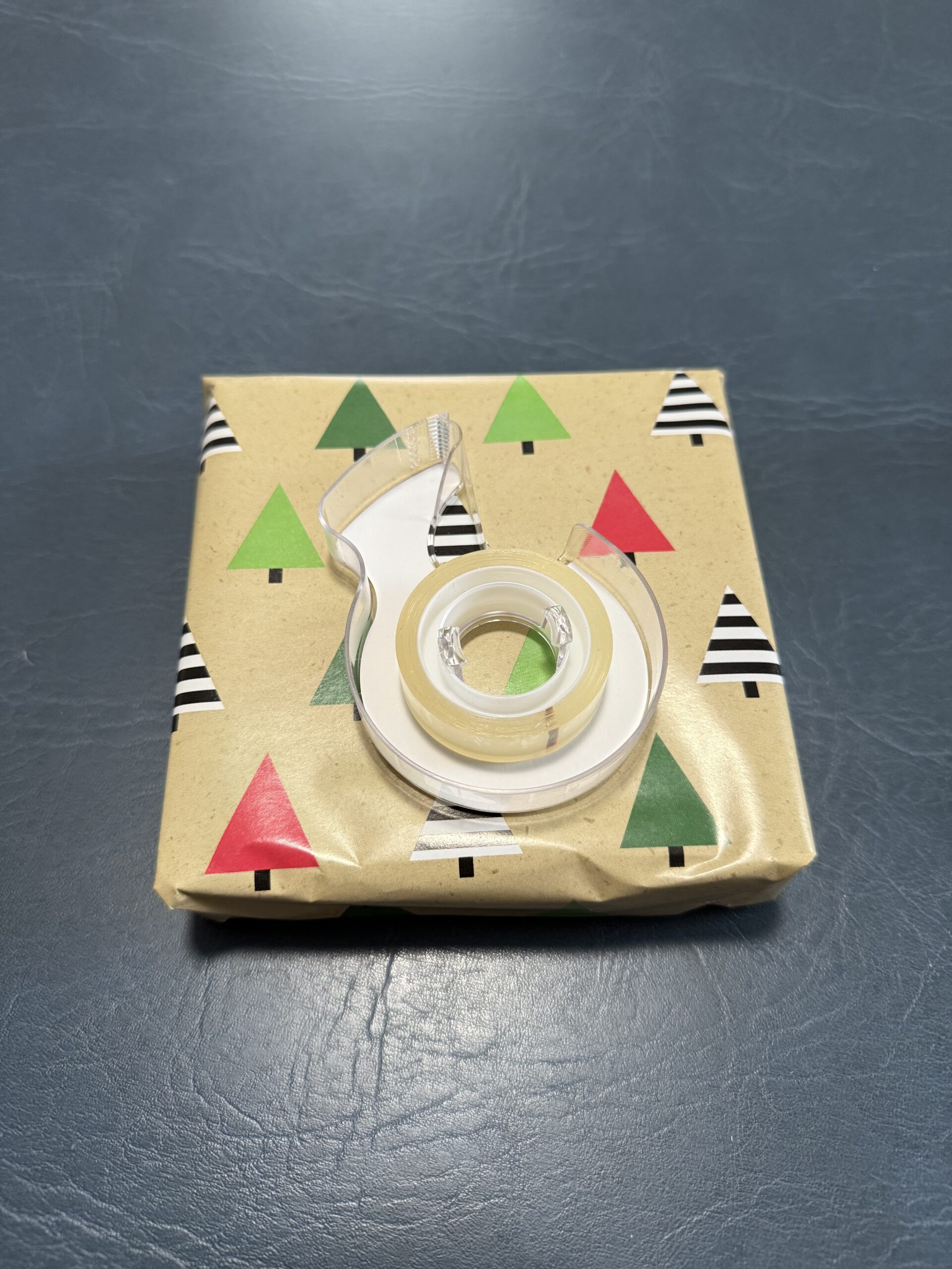 First, while finishing up two gifts for a girlfriend, I could not find the Scotch tape. I had just had it less than a minute before. My “Wrapping Central” is very organized, not only because I like order but also due to the fact that I am visually impaired. If everything is in its place, my life is much easier. I had not heard it hit the floor, it was not with the tags, pen and scissors on the desk. The only items on the card table I had set up in our office were the gift I had just wrapped, along with the one I was working on.