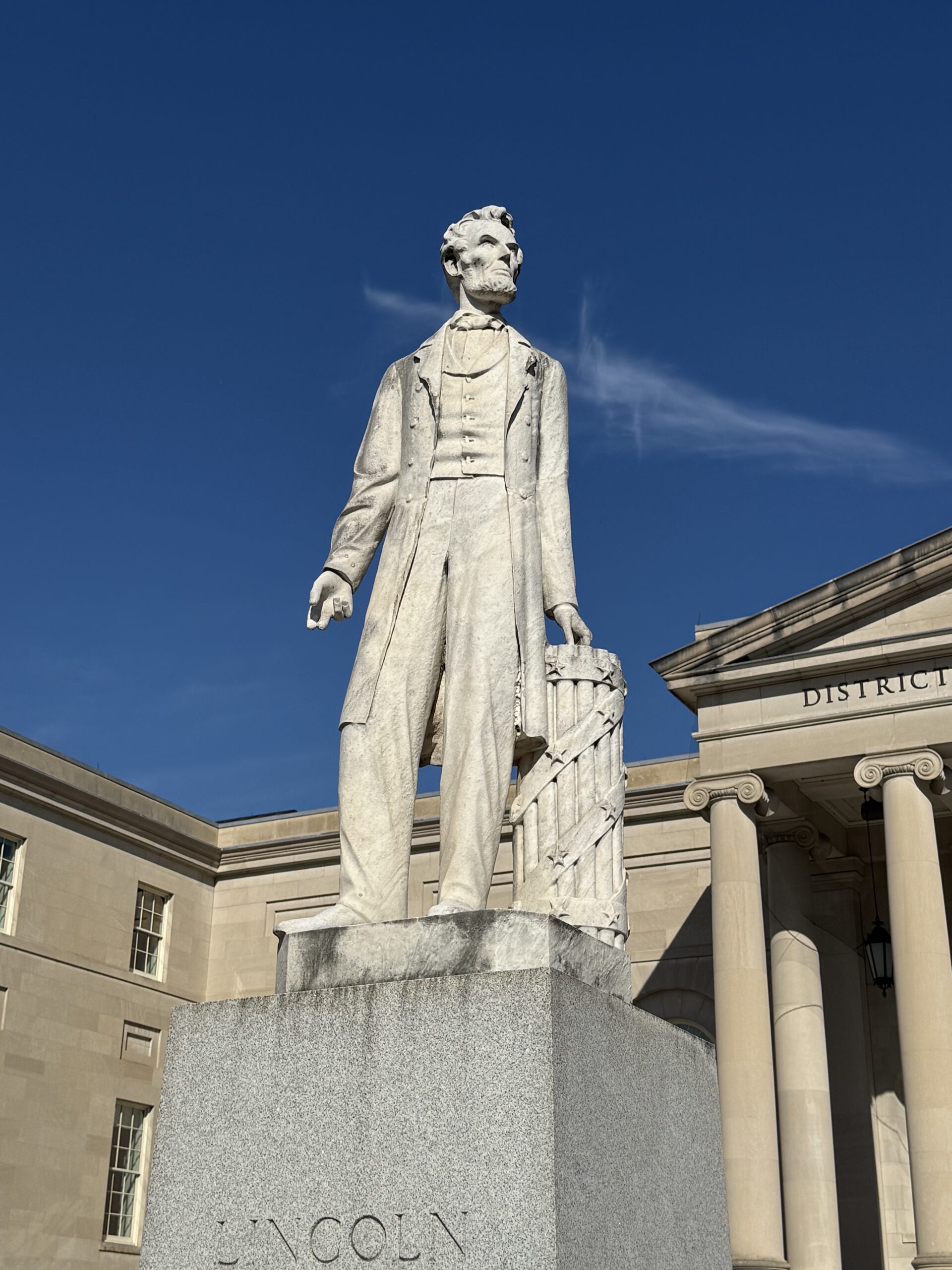 DC officials returned the carved figure of Lincoln in October 1923, moving it just a few feet away from its original spot. His right hand later fell off and was replaced by one that is slightly too large, and his 18-foot-high pillar was changed to a lower pedestal. Otherwise, this 157-year-old statue of President Abraham Lincoln still stands . . . a tribute to the man, his sacrifice and enduring beliefs.