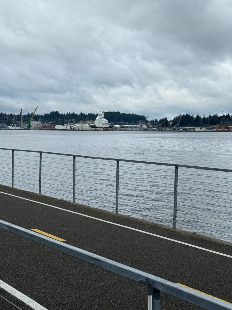 Having been to Port Orchard, Washington three years in a row, even with my limited vision, I have come to know what the coast of Bremerton, across Puget Sound, looks like. During our most recent trip, I noticed a large white something that had not been there before, so I asked my husband if it was a new building. He was driving so he couldn’t study it properly. “I’m not sure,” he replied.