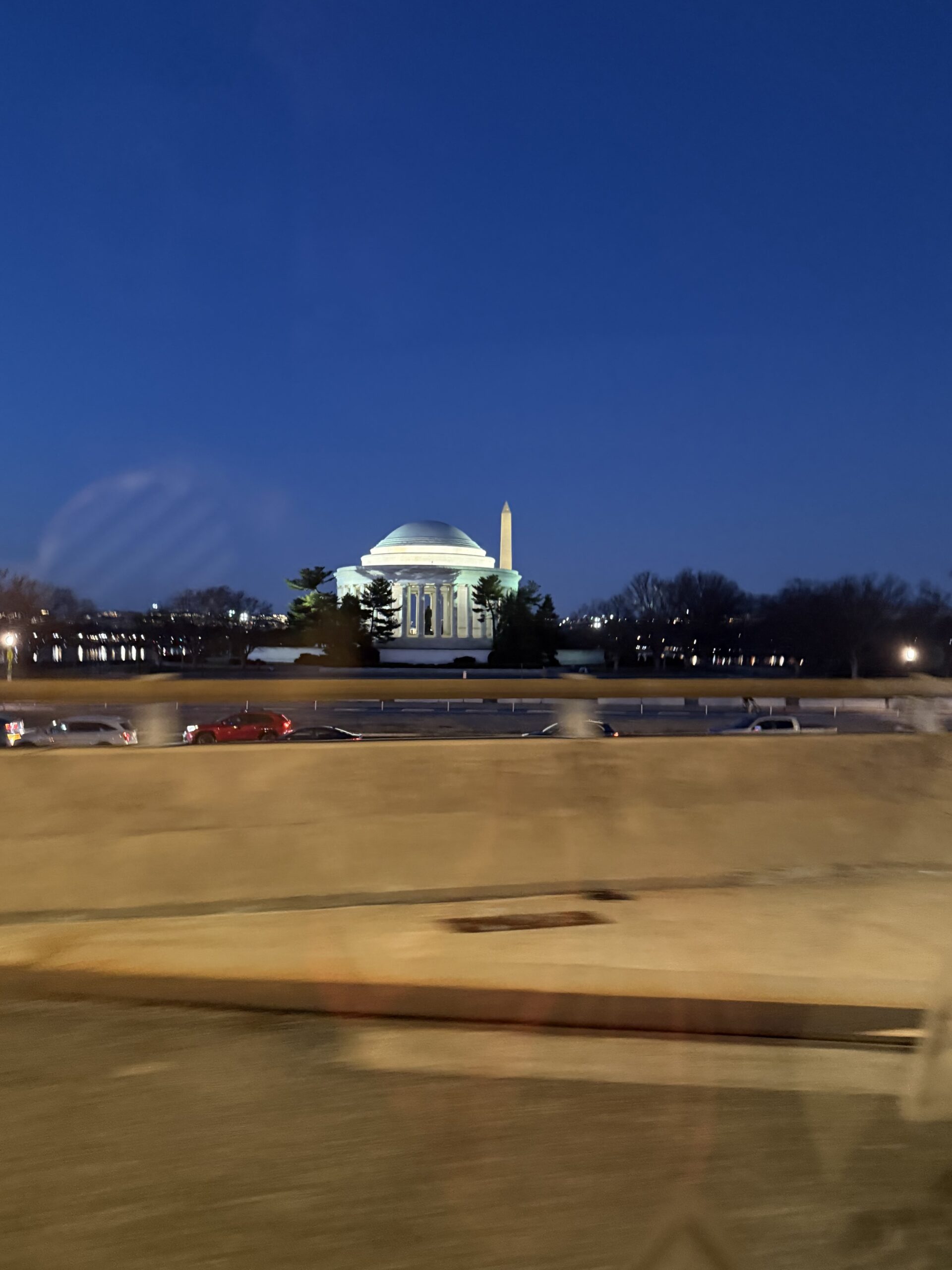 The following evening on the way back to our hotel after dinner, the Thomas Jefferson Memorial caught my attention out the passenger window. Able to discern its dome, I confirmed with my husband that it was indeed the Jefferson Memorial. Before he could reply, I was snapping photos. Once back in our room, I viewed the pictures. Since blue is the only color I really see, the incredibly striking sky was mesmerizing. This photo is not doctored or edited. I think it is remarkable.