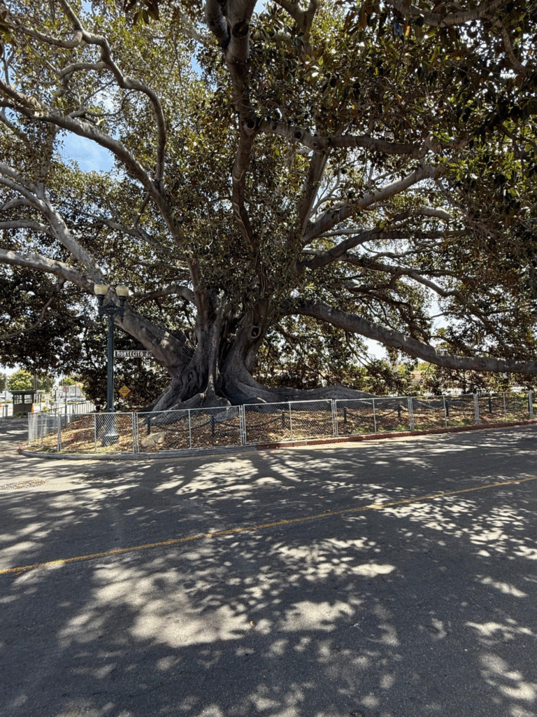 In 1876, an Australian seaman visiting Santa Barbara gave an Australian Moreton Bay fig tree seedling to a local girl who planted it on State Street. After the girl moved away a year later, her friend transplanted the tree at the corner of Montecito and Chapala streets.