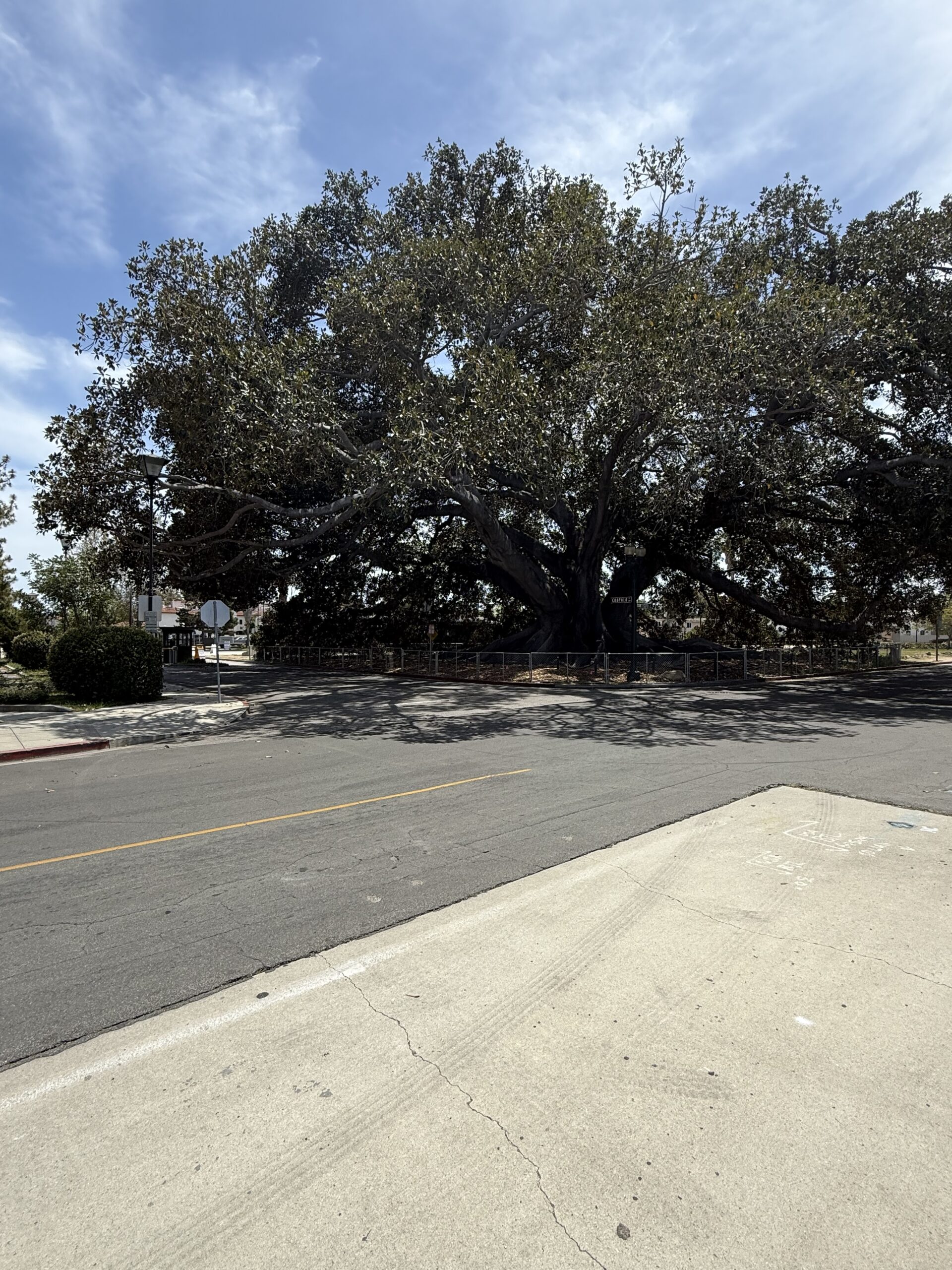 Over 120 years old, Santa Barbara’s Moreton Bay Fig Tree is believed to be the largest of its kind in the United States. Either 75 or 80 tall, depending who you talk to, the canopy (branch spread) is over 175 feet wide. The trunk is massive, with a diameter of about 12.5 feet.