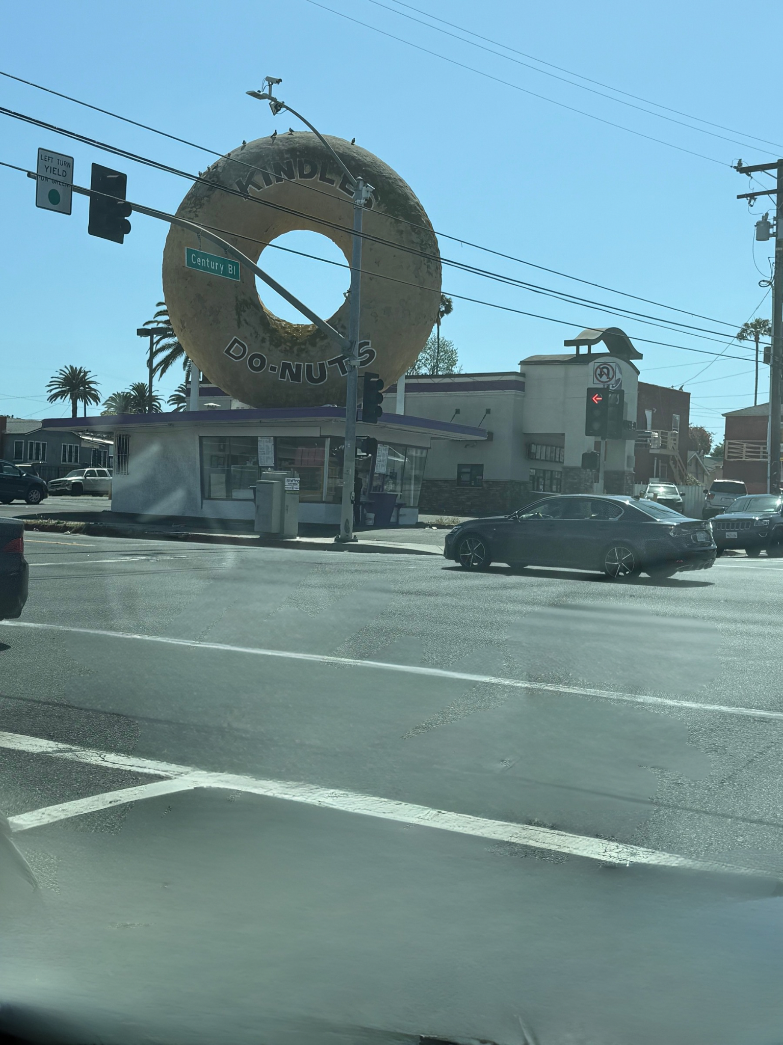 I was familiar with Randy’s Donuts in Los Angeles, but not Kindle’s. I have since learned that Kindle’s Donuts was the first location of the Big Donut Drive-In chain, which was founded in LA in 1950. When the chain grew, Randy’s Donuts was part of the expansion.