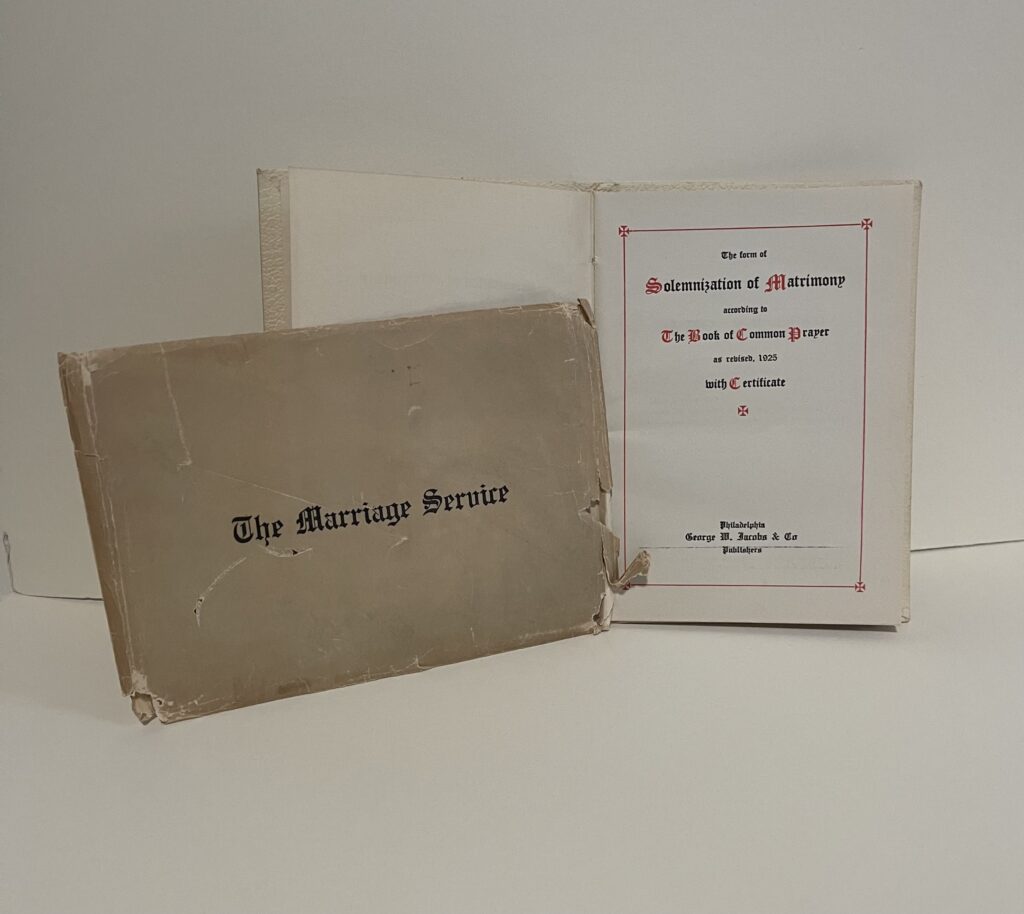 In an envelope marked THE MARRIAGE SERVICE, there was a booklet. Using my video magnifier, I enlarged the pages enough to see that it was from when my nana and pop-pop were married in 1928. I looked through the small program, then immediately grabbed my iPad to see if the church, Trinity Church Oxford in Philadelphia, Pennsylvania, still exists. It does.