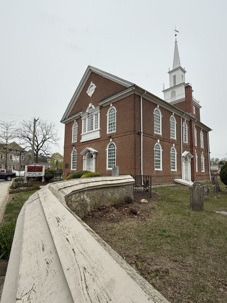 Swedesboro, New Jersey’s Trinity Episcopal Church’s current building was constructed in 1784, replacing an earlier log church that was damaged during the Revolutionary War. Its minister, Reverend Nicholas Collin, kept a journal detailing the war’s impact on the church and the town, including his own capture by militia.