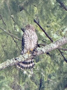 Sending a picture he had taken to a falconer we have come to know (more on that in a future story), we quickly received a reply that the bird was an immature female Cooper Hawk, adding that she was beautiful. I am no expert, but I would agree.