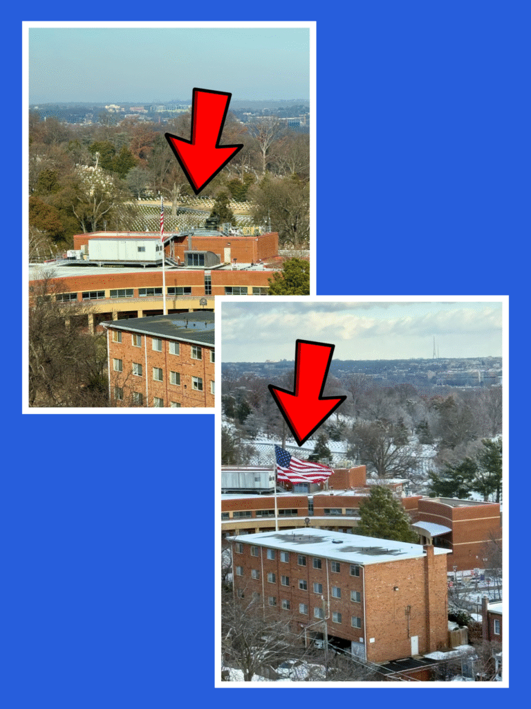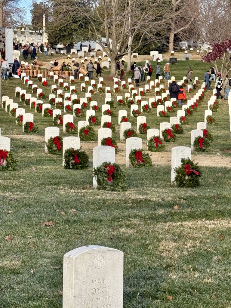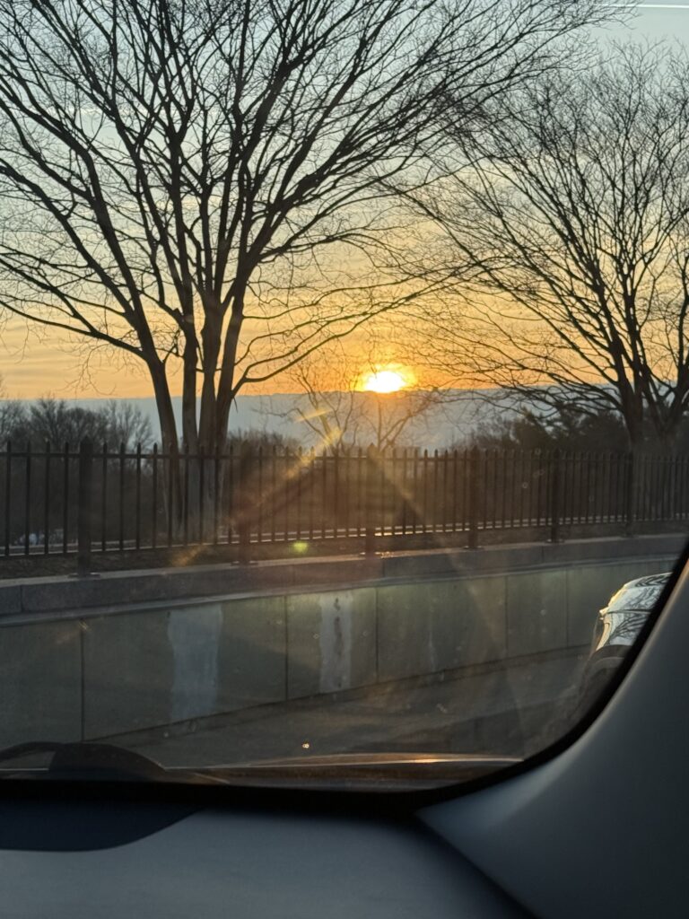 The morning of 2025’s event was a gorgeous 26 degrees in Arlington, Virginia. As my husband and I do every year, we arrived at Arlington National Cemetery early in order to park in the family / handicap designated area, as they close the roads leading to that lot at 7:00 am. Once settled in a spot, we were required to remain in our car until 8:00 am, after which time we could make our way to the entrance of the cemetery. We watched the sunrise from the warmth of our car.